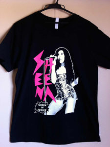 蛍光ピンクのSHEENAの文字がかっこいい、ジャングルから飛び出してきたシーナがシャウトするロックなTシャツ。 シーナのパワーをもらって元気に行こうー!そんな気分になるTシャツです。2012年7月発売。
